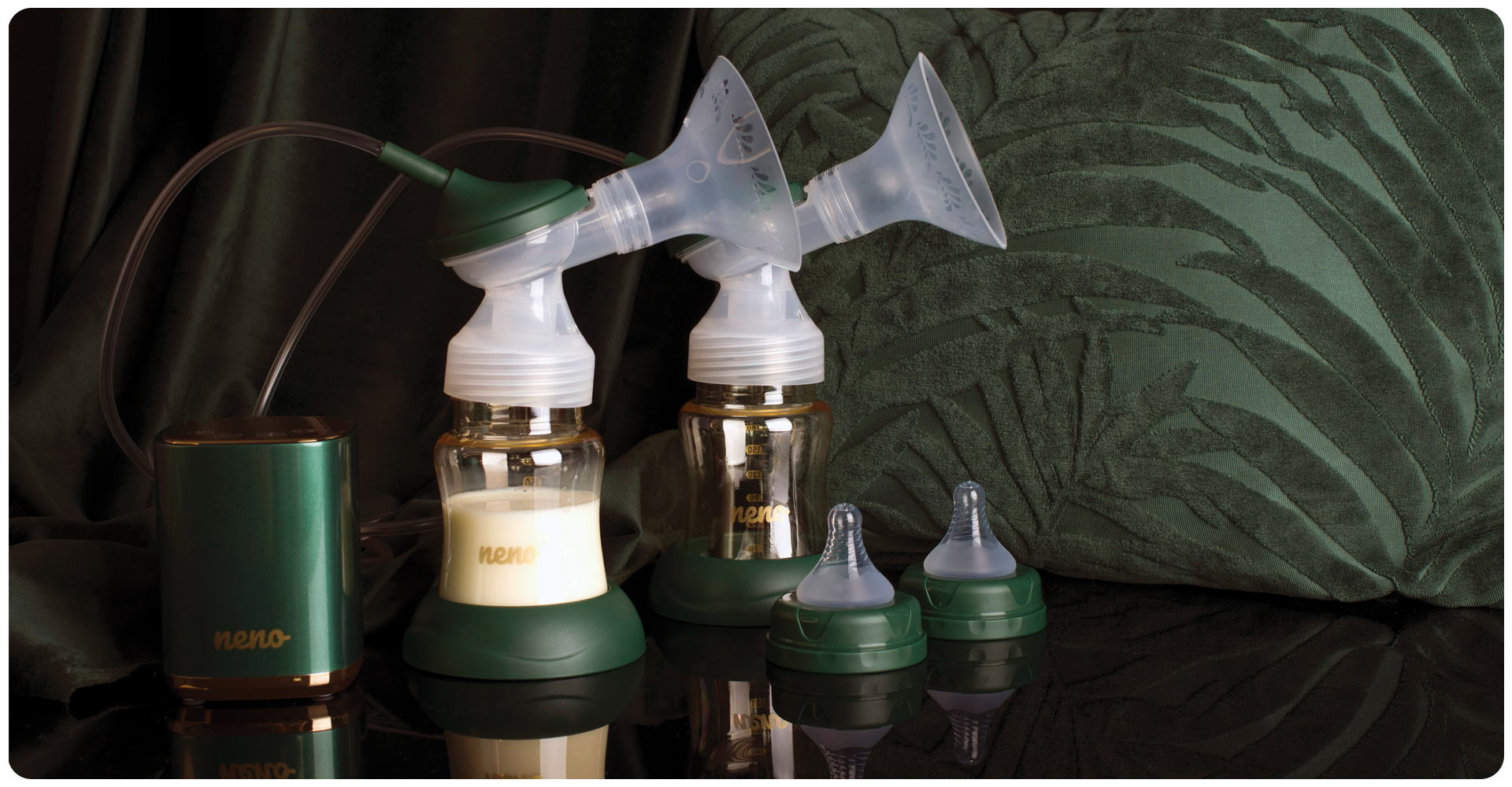 Elegancki wygląd i butelkowa zieleń laktatora wraz ze złotymi elementami przyciąga wzrok, a nowoczesna 2-fazowa technologia ułatwiają życie wielu nowoczesnym Mamom. Butelki laktatora neno Bueno wykonano z odpornego na uszkodzenia i wolnego od BPA materiału (PPSU). Każda z nich ma pojemność 180 ml, ale możesz zastosować także nowe butelki neno o pojemności 240 i 300 ml.