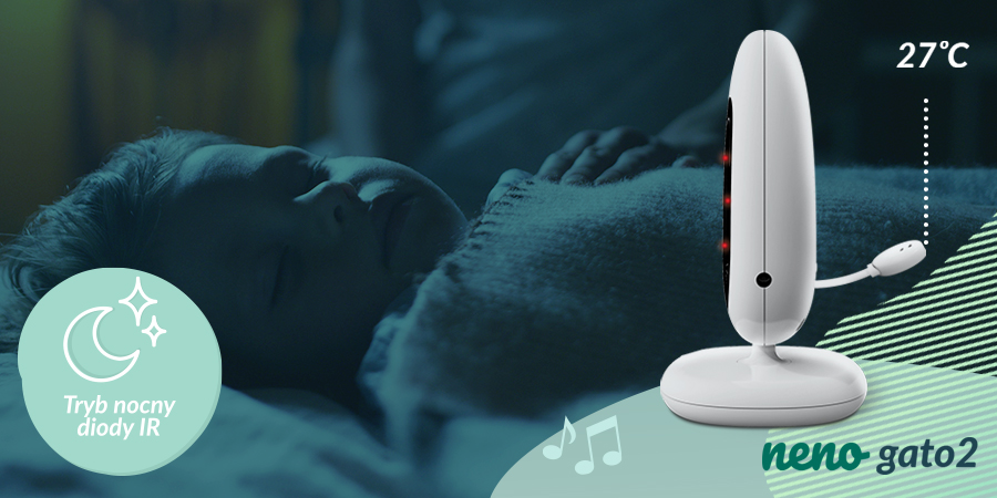 Wielu rodziców dopiero po przyjściu pociechy na świat odkrywa, że nie zawsze są w stanie czuwać nad swoim dzieckiem i obserwować je 24 godziny na dobę. Po to są elektroniczne nianie. Neno Gato 2 pozwala dodatkowo na monitorowanie temperatury w pokoju — możesz łatwo sprawdzić, czy dziecku nie jest za ciepło lub za zimno.