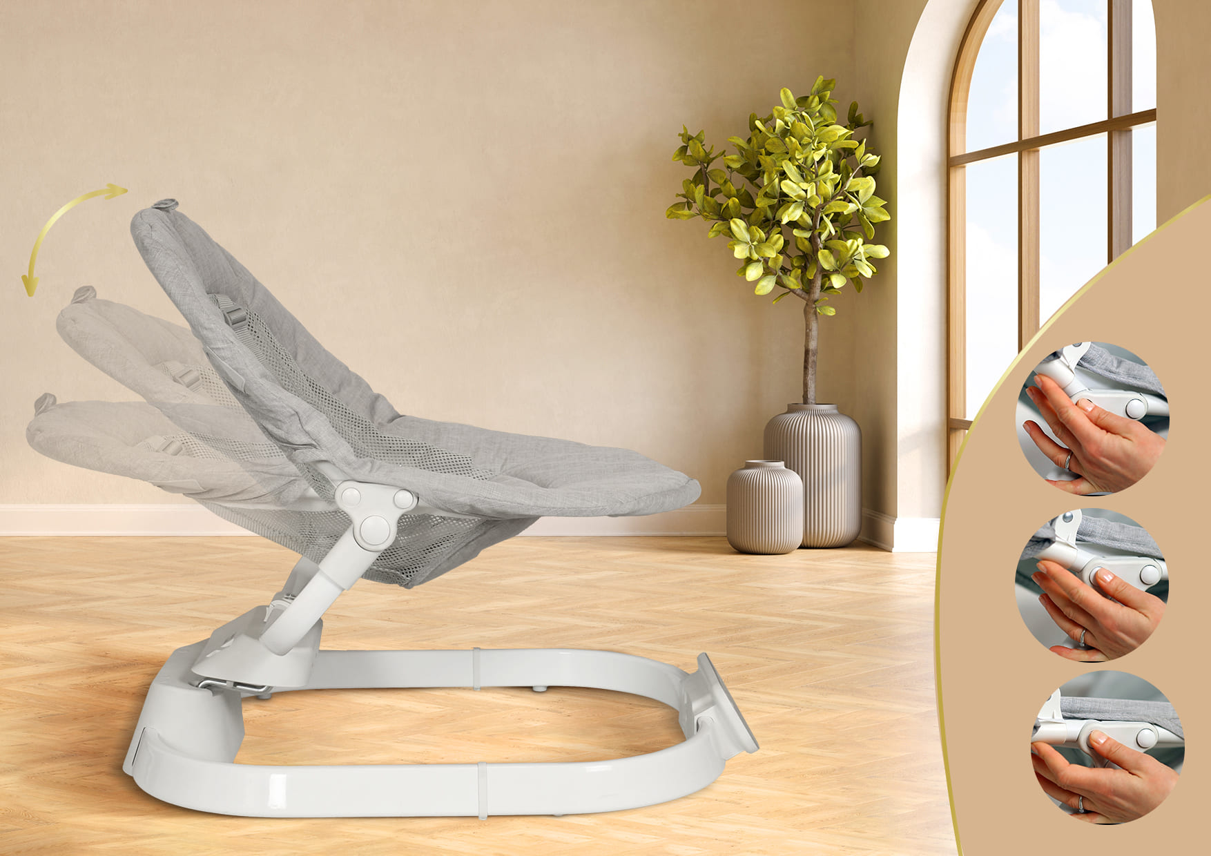 Neno Nube został zaprojektowany tak, aby jak najlepiej dostosować pozycję do Waszych preferencji. Nie tylko siedzisko posiada regulację. Wybierz jeden z trzech kątów nachylenia i ciesz się z użytkowania bujaczka.