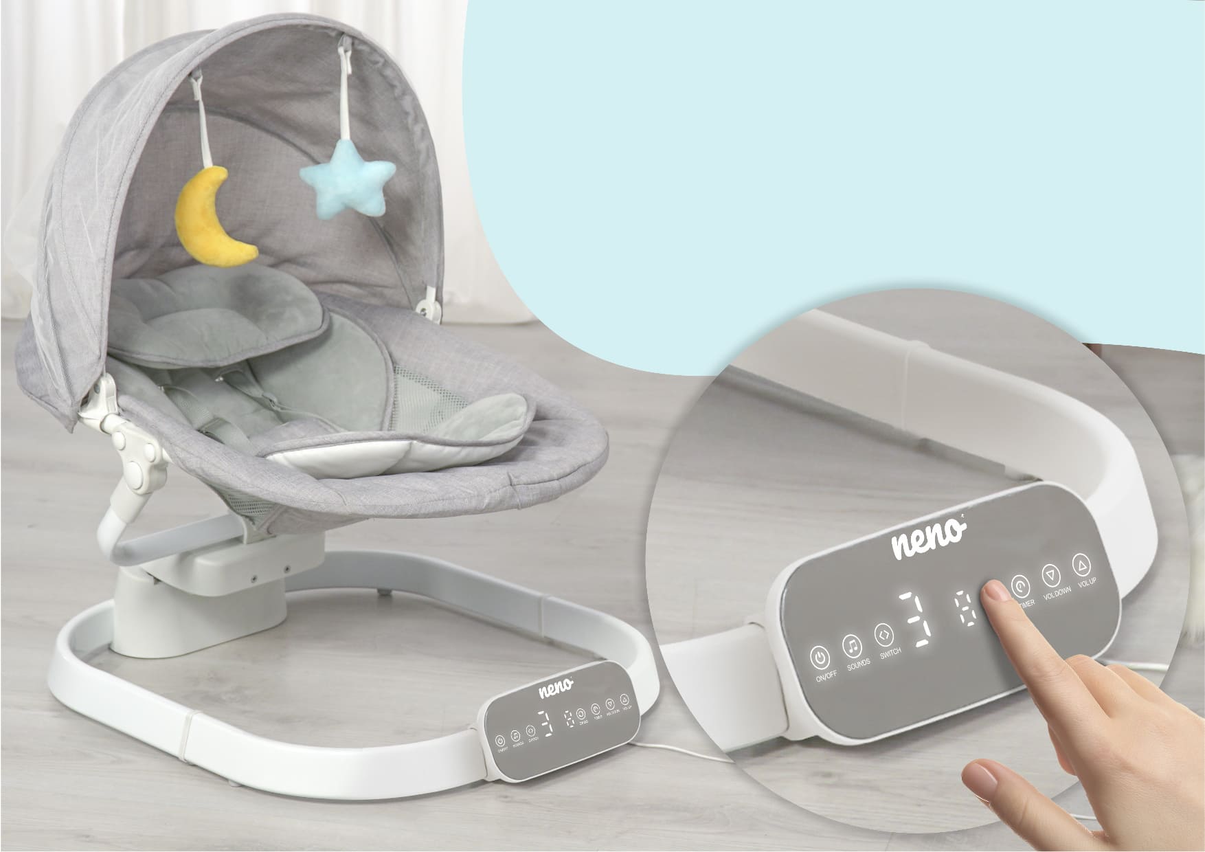 Kolejna z zalet produktu to nowoczesny, dotykowy wyświetlacz z szybkim dostępem do menu oraz funkcji, takich jak regulacja poziomów bujania czy timer.