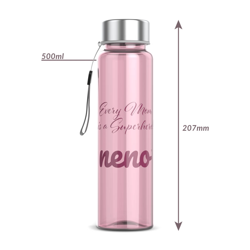 Bidon Neno wyróżnia się eleganckim, podłużnym kształtem. Różowy kolor dodaje mu uroku i sprawia, że przyciąga wzrok. Motto marki Neno: “Every mom is a superhero” podkreśla, że bidon został zaprojektowany z myślą o aktywnych i dbających o zdrowie kobietach, które każdego dnia stawiają czoła nowym wyzwaniom.